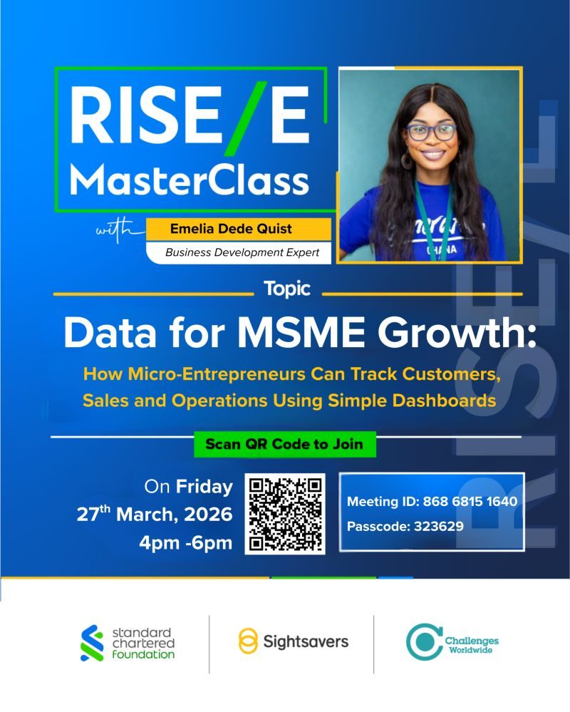As part of the RISE/E Programme’s commitment to strengthening MSME performance and promoting data-driven decision-making, Challenges Ghana invites entrepreneurs to an engaging and practical virtual masterclass designed to help you harness the power of data without complexity or expensive tools.