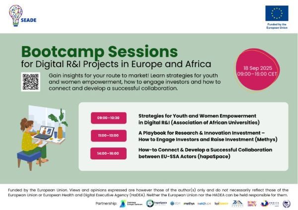 Get ready for a full day of insights designed to take your digital research & innovation projects to the next level. This online bootcamp brings together African and European innovators, investors, and ecosystem actors for practical knowledge-sharing and collaboration.
